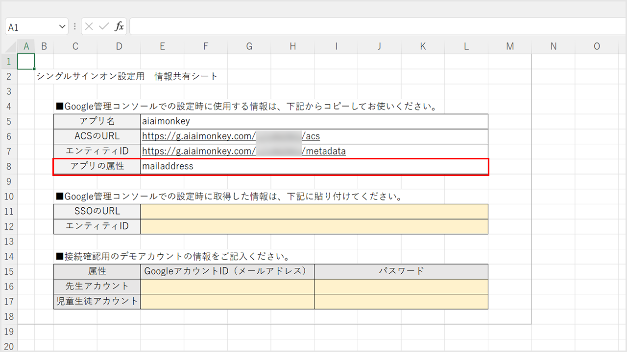 ・「SSOのURL」と「エンティティID」を記載した提出用シート